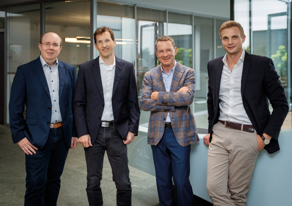 The management of Solupharm Pharmazeutische Erzeugnisse GmbH: from left, Dr. Jürgen Gäb as pharmaceutical managing director, Thomas Zimmermann as commercial managing director, Friedemann Seitz as managing partner and Ferdinand Seitz as technical managing director.